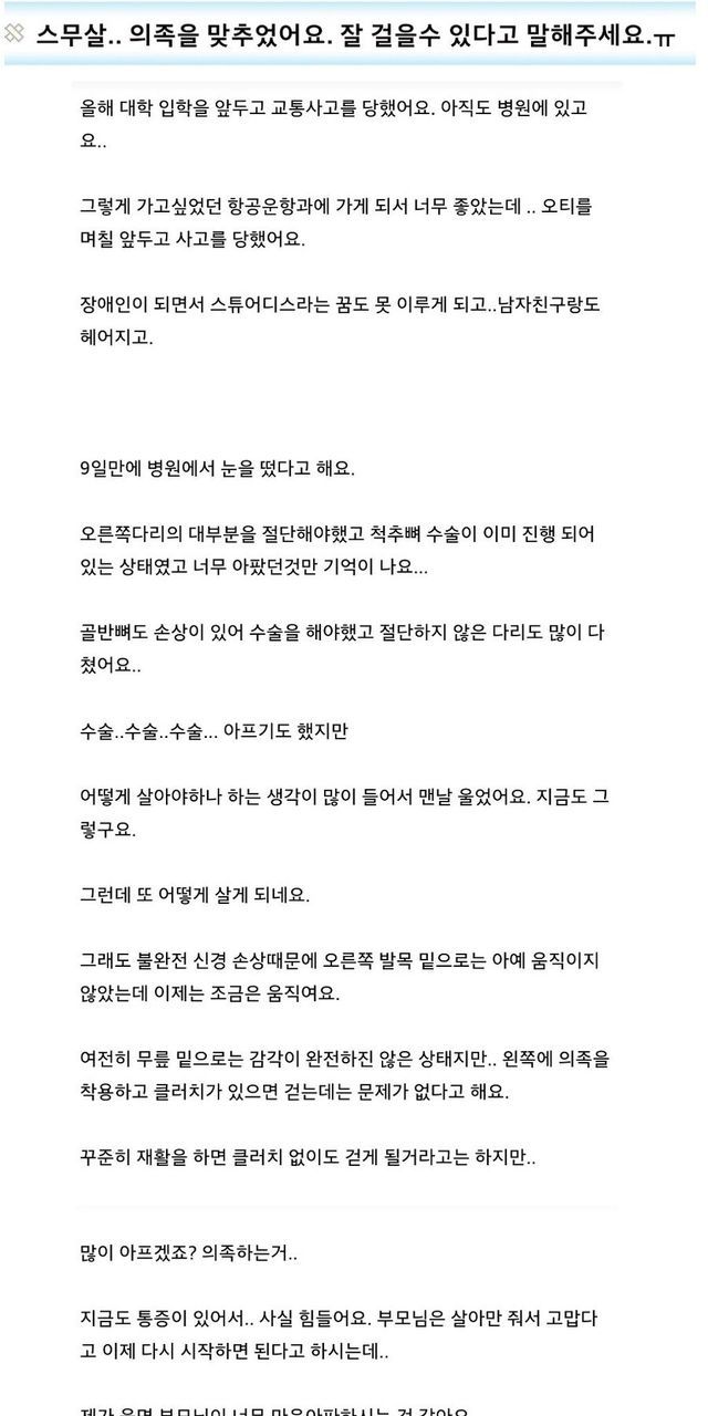 (레전드..) 20대에 의족 하게된 여자