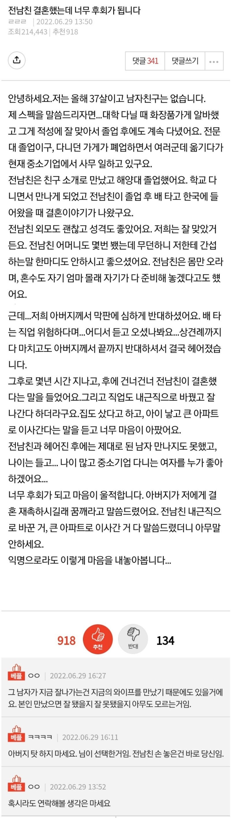 전남친 결혼했는데 너무 후회가 됩니다..