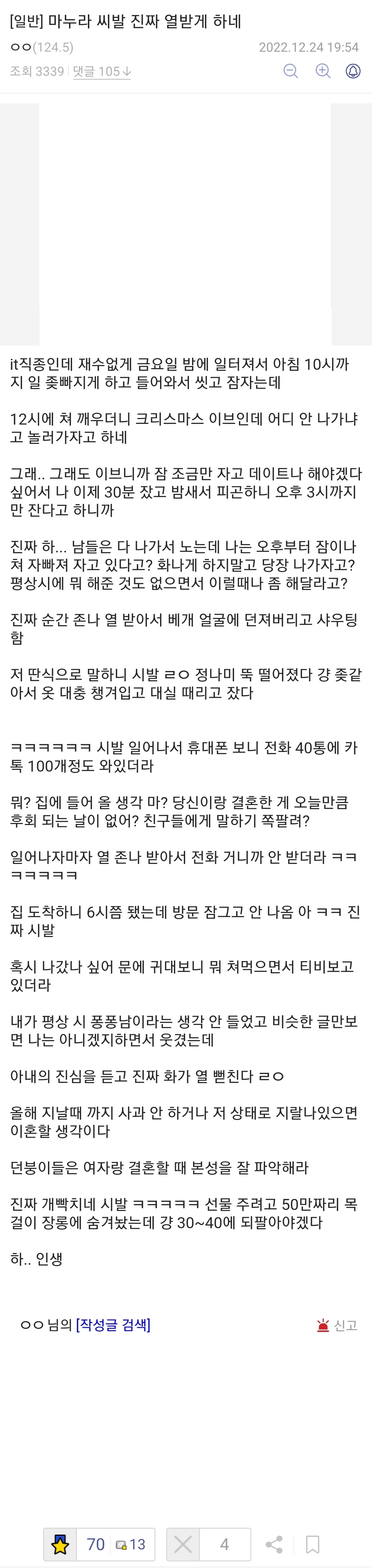 성탄 이브에 와이프 한테 개 빡친 아저씨